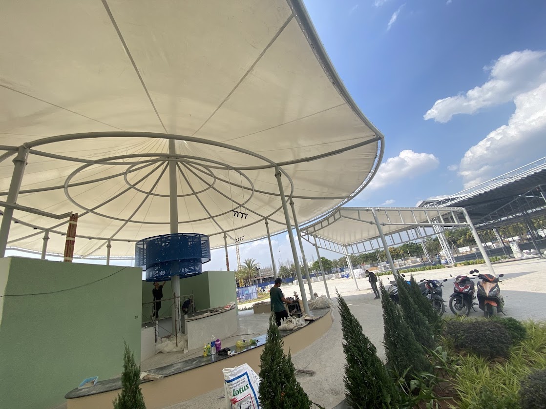 HGMS chuyên thiết kế, thi công, lắp đặt hệ thống mái che bạt kéo căng cho Quý Khách Hàng là : Trung Tâm Thương Mại, Khu Du Lịch, Khu Vui Chơi – Giải Trí, Khách Sạn, Hồ Bơi, Nhà Hàng, Sky Bar, Quán Cà Phê, Bãi Đỗ Xe, Công Trình Dân Dụng…Tất cả các sản phẩm của HGMS đều được lắp đặt từ nguyên liệu nhập khẩu cao cấp có khả năng chịu được điều kiện thời tiết khắc nghiệt với độ bền sử dụng lên đến 15-20 năm.