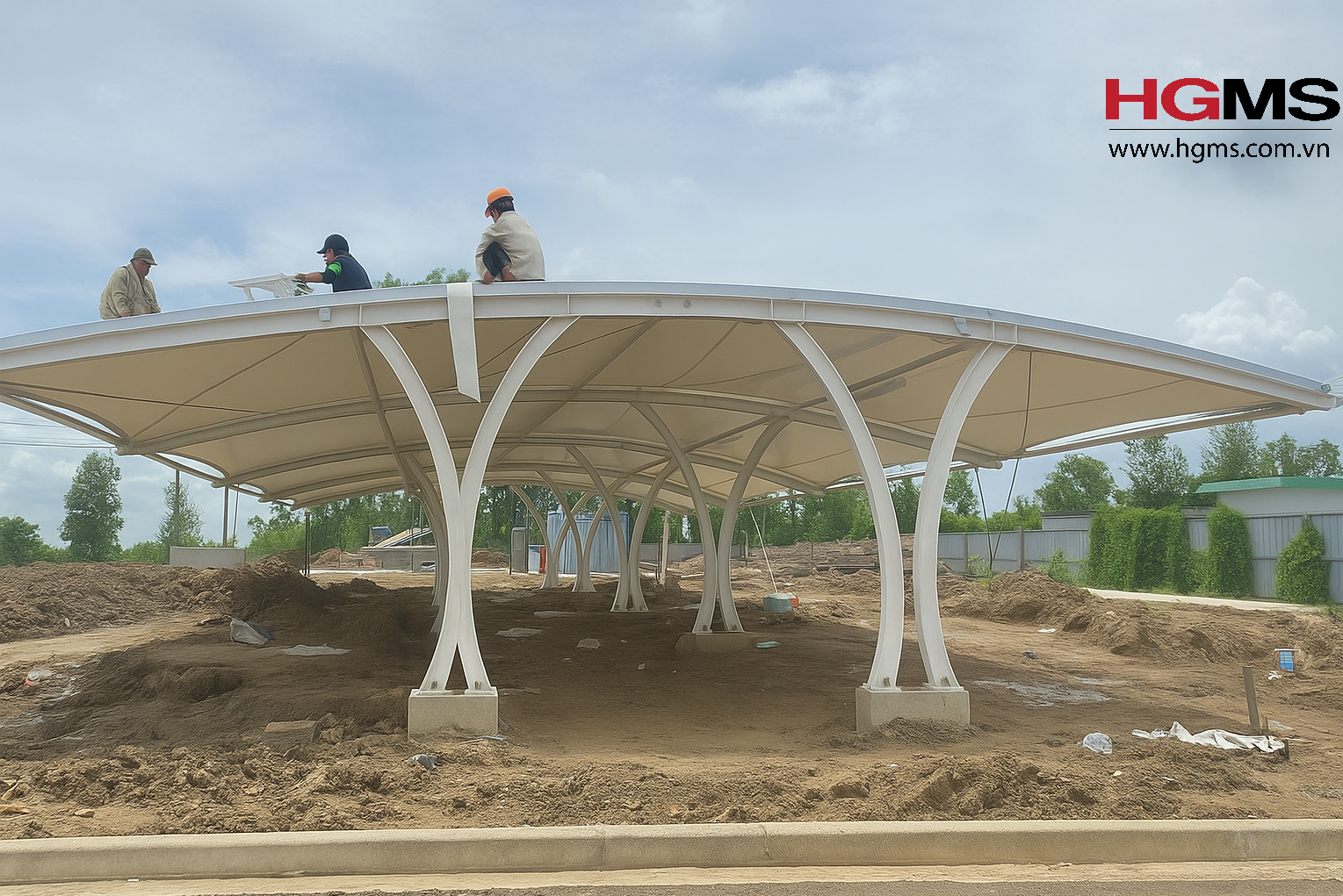 bạt căng / Coffee Bar làng Pháp / Mái bạt / mái che bạt căng / mái che cánh buồm / mái che kiến trúc